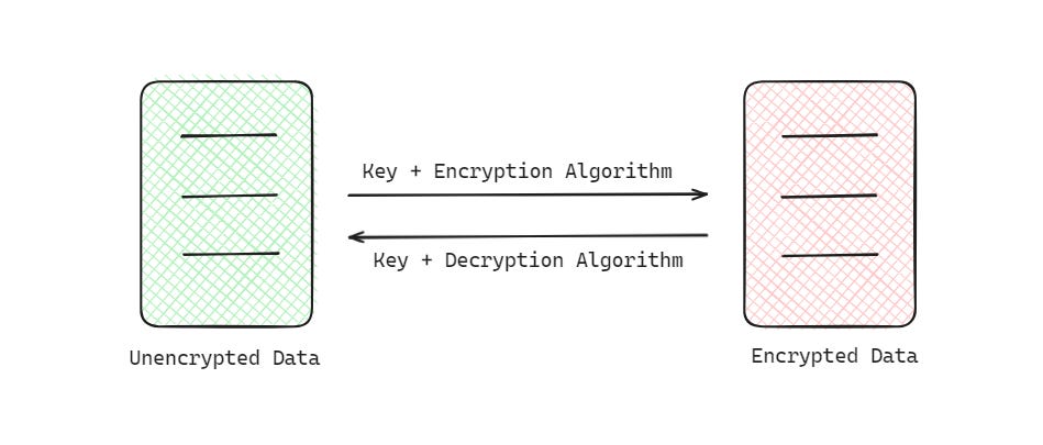 Symmetric Encryption — where the same key is used to encrypt and decrypt the data