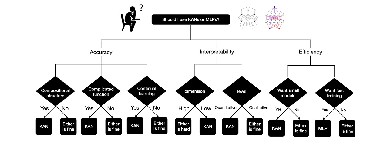 The researchers provide a useful decision tree that can help us decide when to use KANs vs. MLPs.