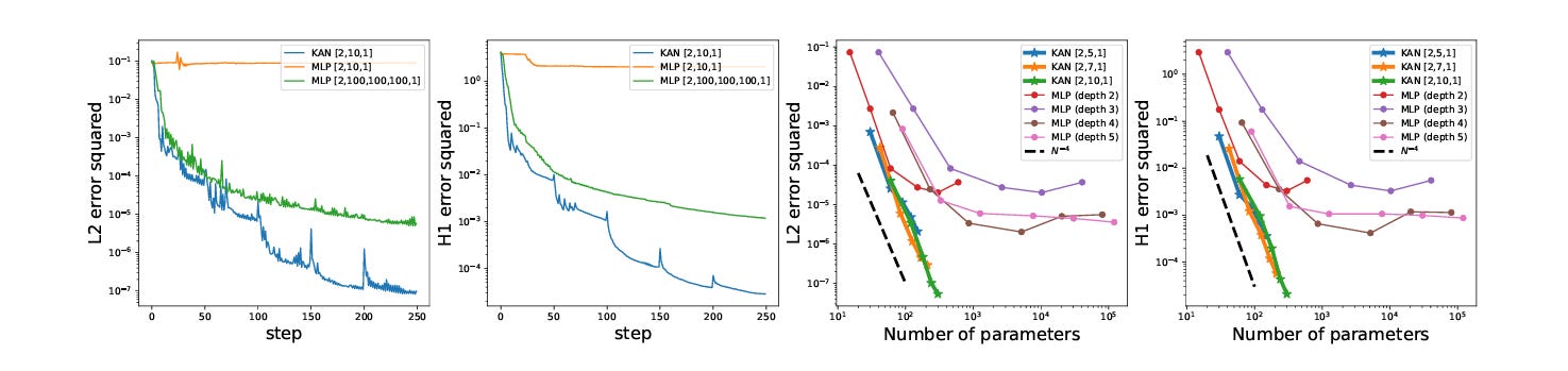 This accuracy is achieved using fewer parameters than an MLP. In other words, KANs possess faster neural scaling laws than MLPs.