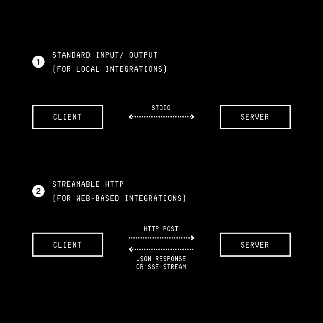 }There are two standard transport mechanisms that MCP uses to exchange these messages: