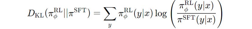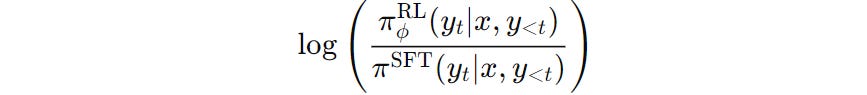 π(SFT)(y∣x)This value is calculated for both models/policies at each token generation step rather than being calculated over the entire output sequence at once.