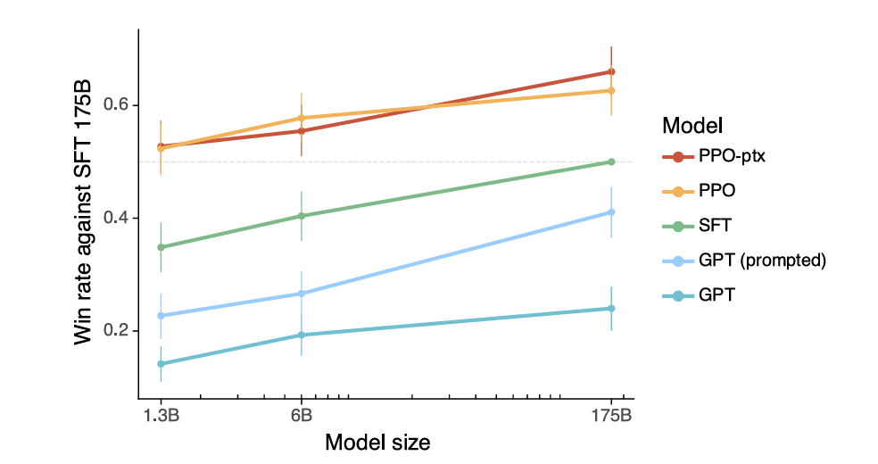 ‘PPO-ptx’ is the GPT preference tuned with the objective with the pre-training loss included