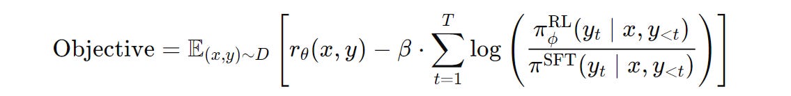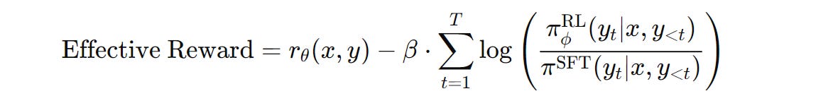 Coming back, the RL preference tuning objective that we aim to maximize can be expressed as —