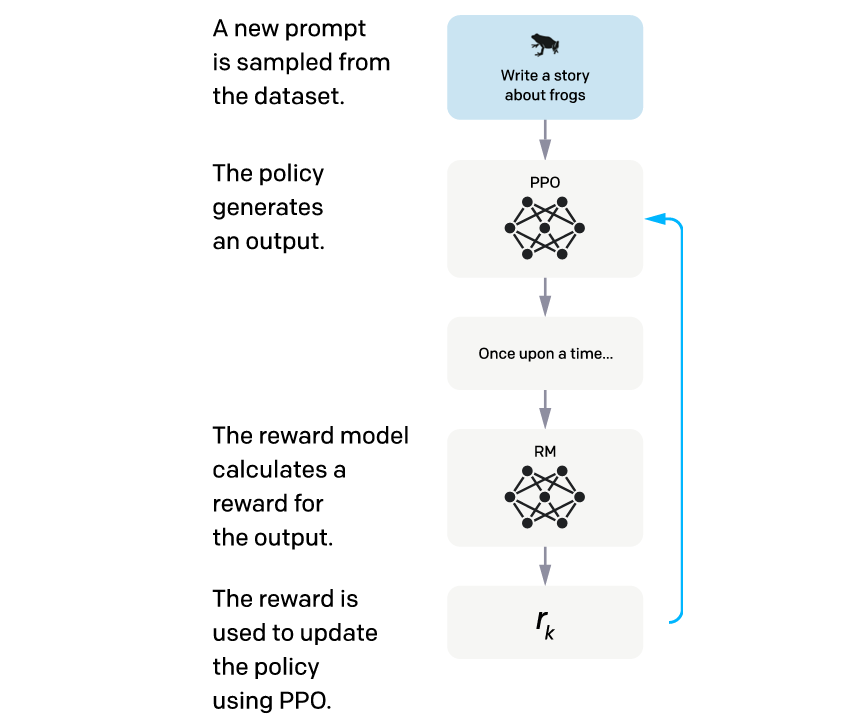 Next, we use an RL algorithm called Proximal Policy Optimization (PPO) to maximize this objective.