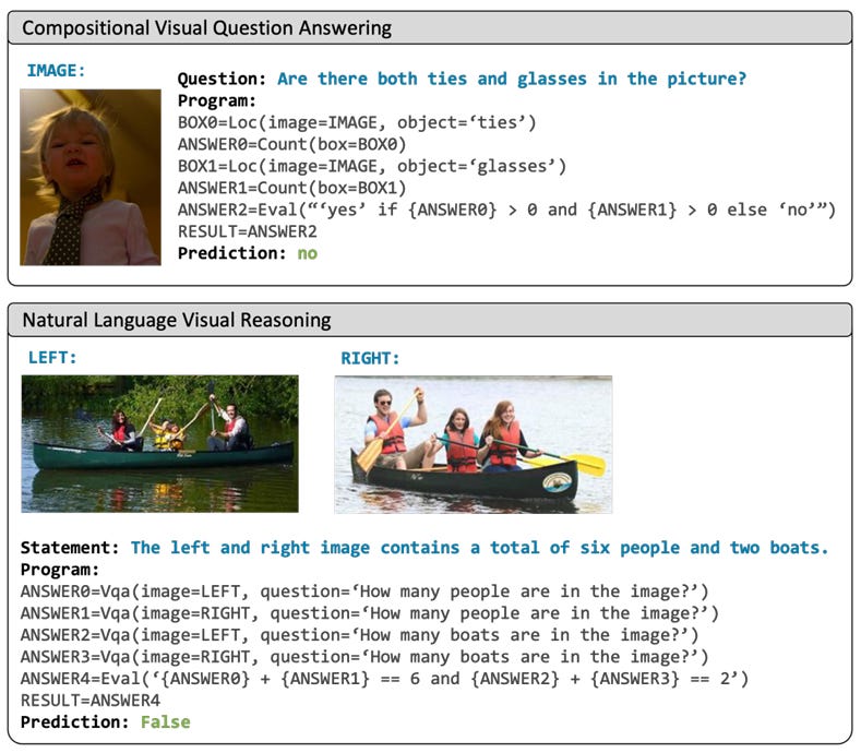 Similar to CoT prompting, researchers have previously explored decomposing complex vision tasks into smaller and simpler sub-steps that can be solved using specialized vision tools.