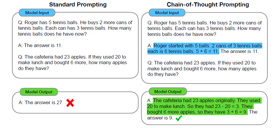 Published in 2022 in ArXiv, Chain-of-Thought (CoT) is a prompting technique that allows LLMs to decompose a complicated reasoning task into small intermediate sub-problems.