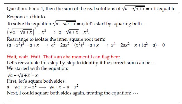 It looks like the model suddenly realises that it can think better and flags an “aha moment”!