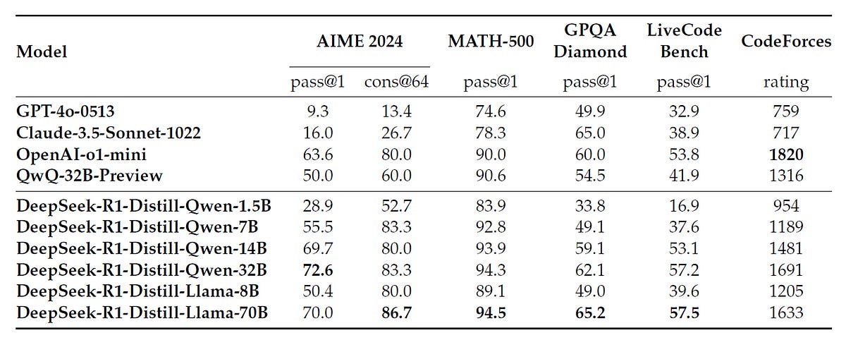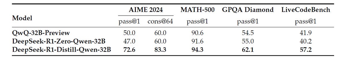 The surprising point to note is that these results are just after SFT, which shows how powerful DeepSeek-R1 is in imparting its knowledge.