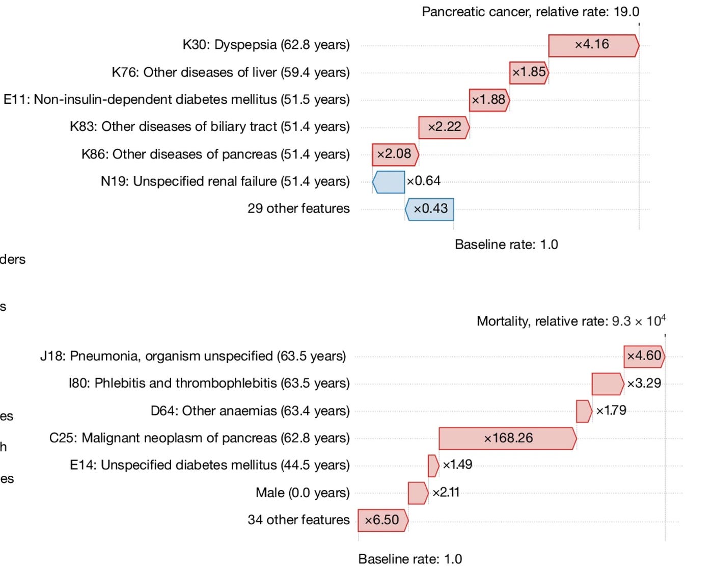 For example, if the “cancer timer” ticks before the “heart disease timer,” the model will predict that cancer will appear next, and also tell you when it expects that to happen.