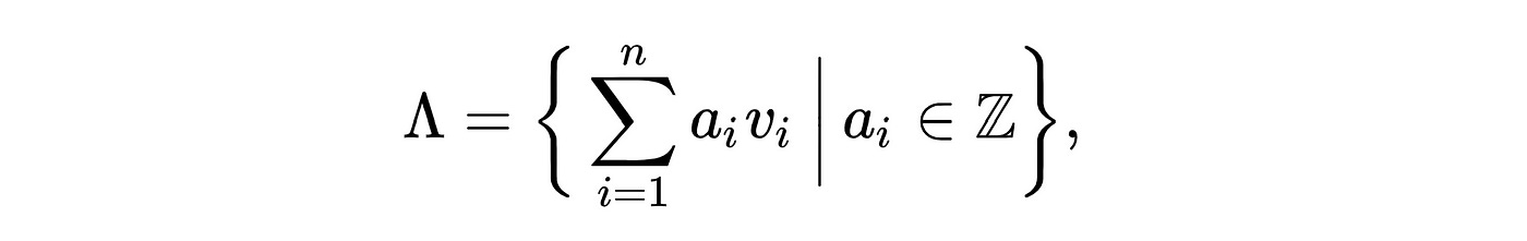 v(1), v(2) .. v(i)are linearly independent basis vectors foridimensions of Euclidean spacea(i)v(i)represents a pointa(i)is an integerZrepresents the set of integers
