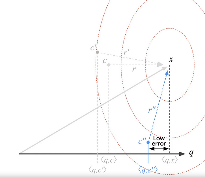 This might sound similar to the intuition from ScaNN’s Quantization approach, but SOAR uses it in the Search Phase instead.