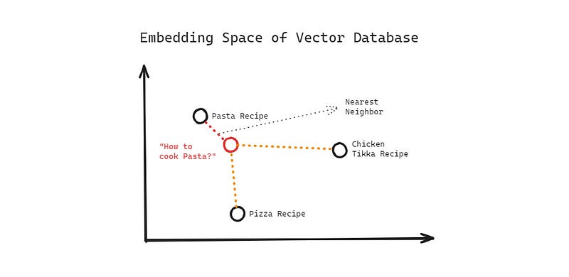 When a query like “How to cook Pasta?” is performed, the text is first converted to embeddings, and then a similar search is performed.