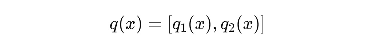 Similarly, the query vector q(x) is split into two sub-query vectors q(1) and q(2), each with d/2 dimensionality.