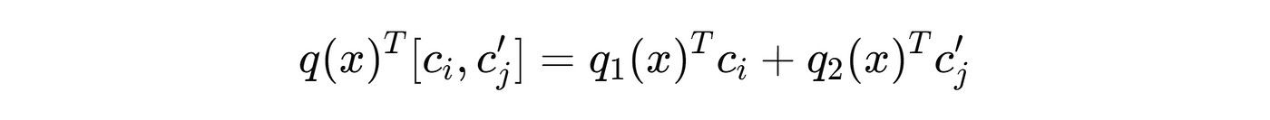 Moreover, the inner product between the candidate key and the query vector q(x) is simply the sum of inner products between the sub-keys and sub-queries.