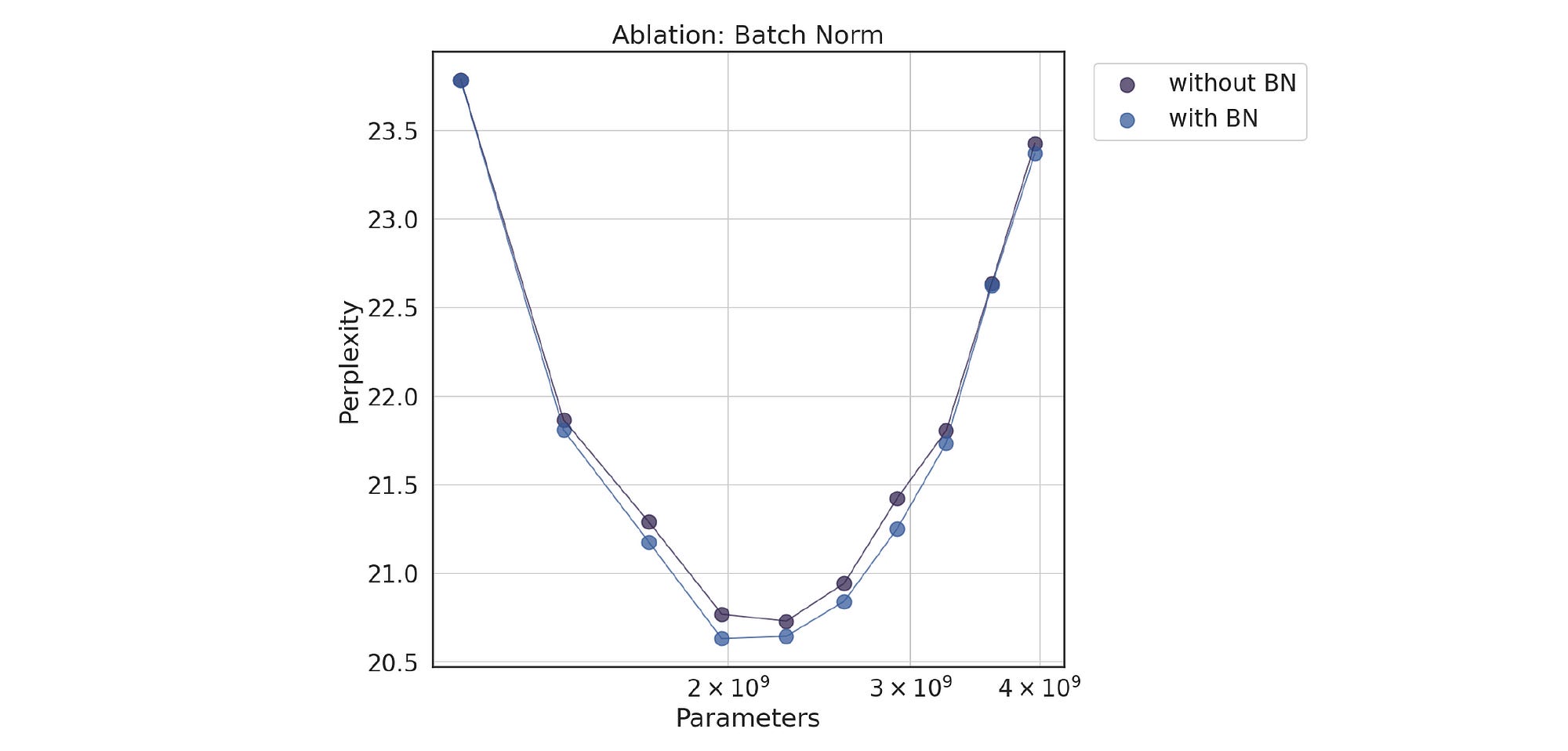The researchers finally study the role of Query Batch Normalization (where the query vectors are normalized across a batch of inputs before their usage) on the model’s Perplexity.