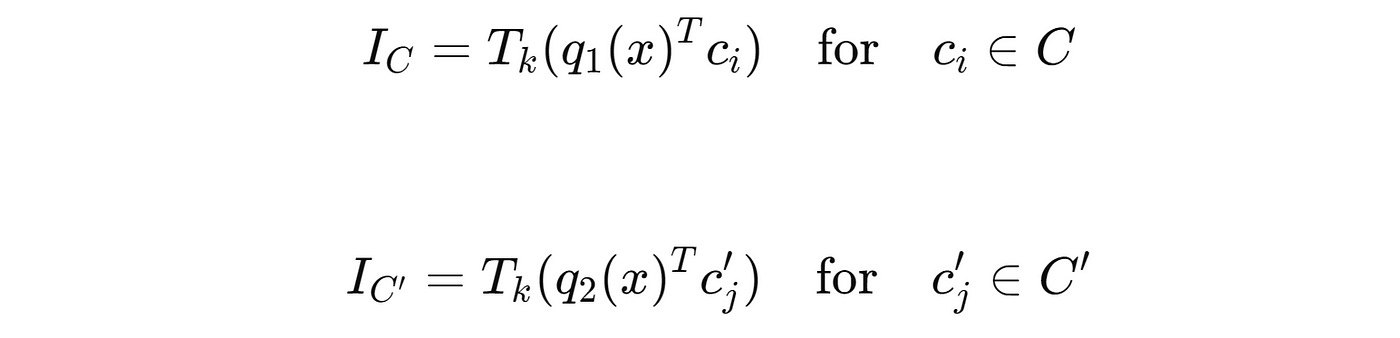 This results in two sets of top-k sub-keys: I(C) and I(C’).