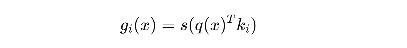 xis passed to a query network that produces a query vectorq(x)The inner products of this query vector with product keys (both with dimensions