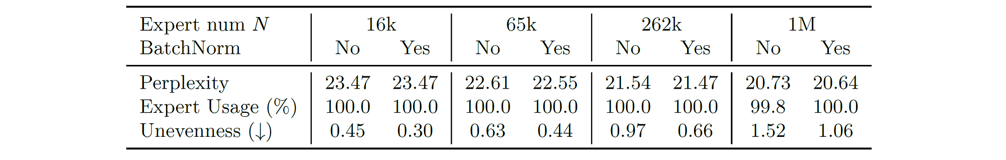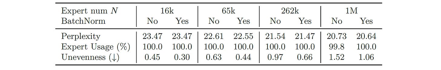 It should also be noted how the model’s Expert Usage is close to 100%, even for more than a million Experts!
