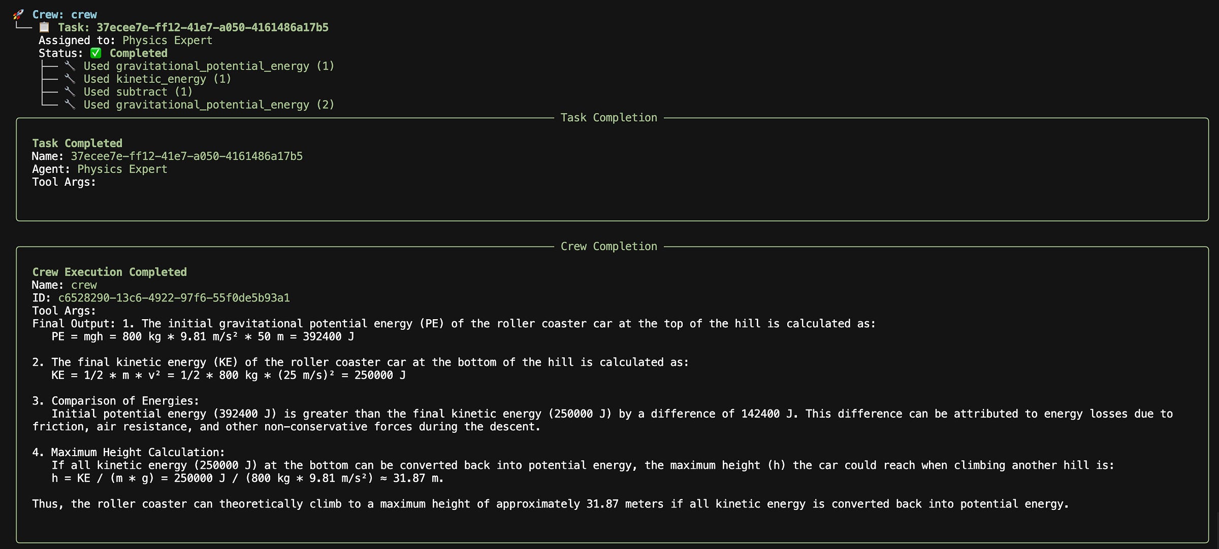 Next, we will use the CrewAI framework to build an agentic system that will use our MCP server tools to solve a given physics problem.