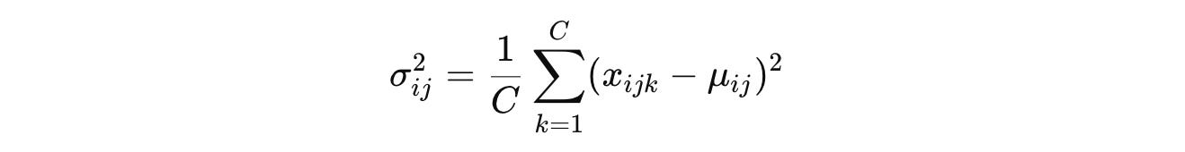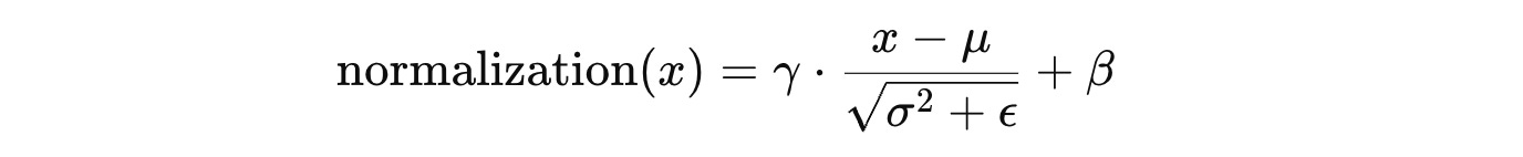 γandβare learnable parameters of shape(C, )for scaling and shifting the output (affine transformation)ϵis a small constant added to the denominator to prevent division by zero (without it, it could lead to exploding gradients)μandσ²are the mean and variance of the input tensor. These are computed differently based on the method being used, as discussed next.