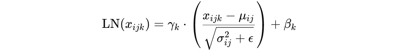 becomes the following for LayerNorm (LN):