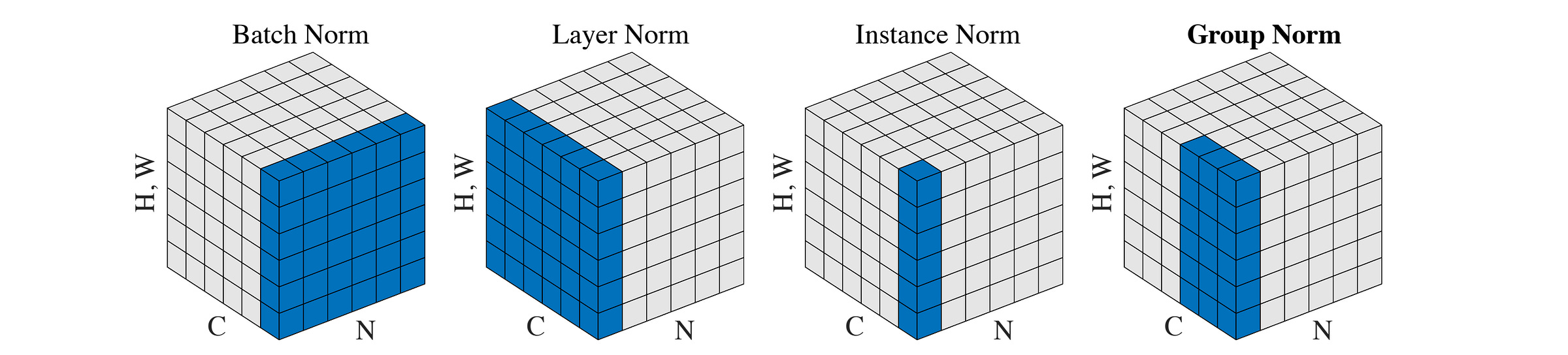 As we previously discussed, the differences between them lie in how the mean and variance are calculated over the input.