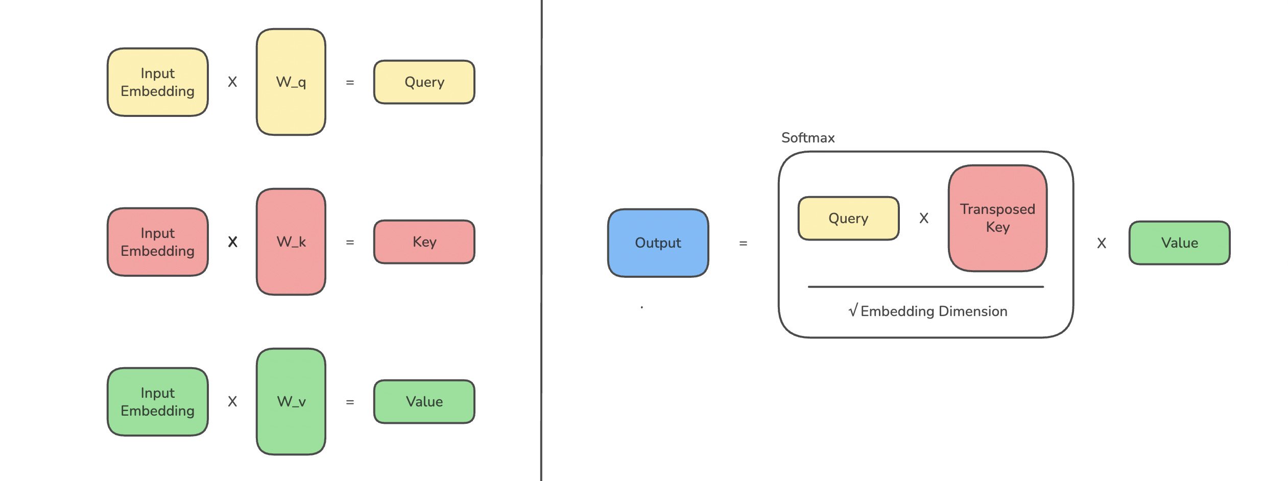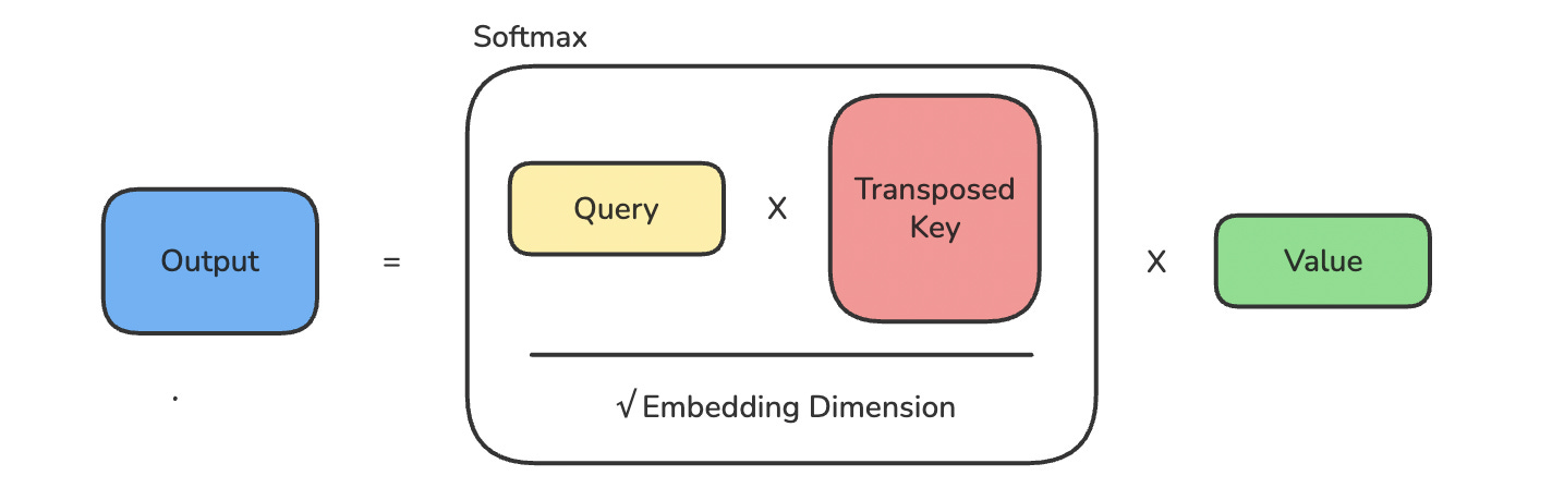 attn_weights = torch.softmax(attn_scores / embedding_dim**0.5, dim=-1)Finally, the attention weights are multiplied by the Values to create the output.