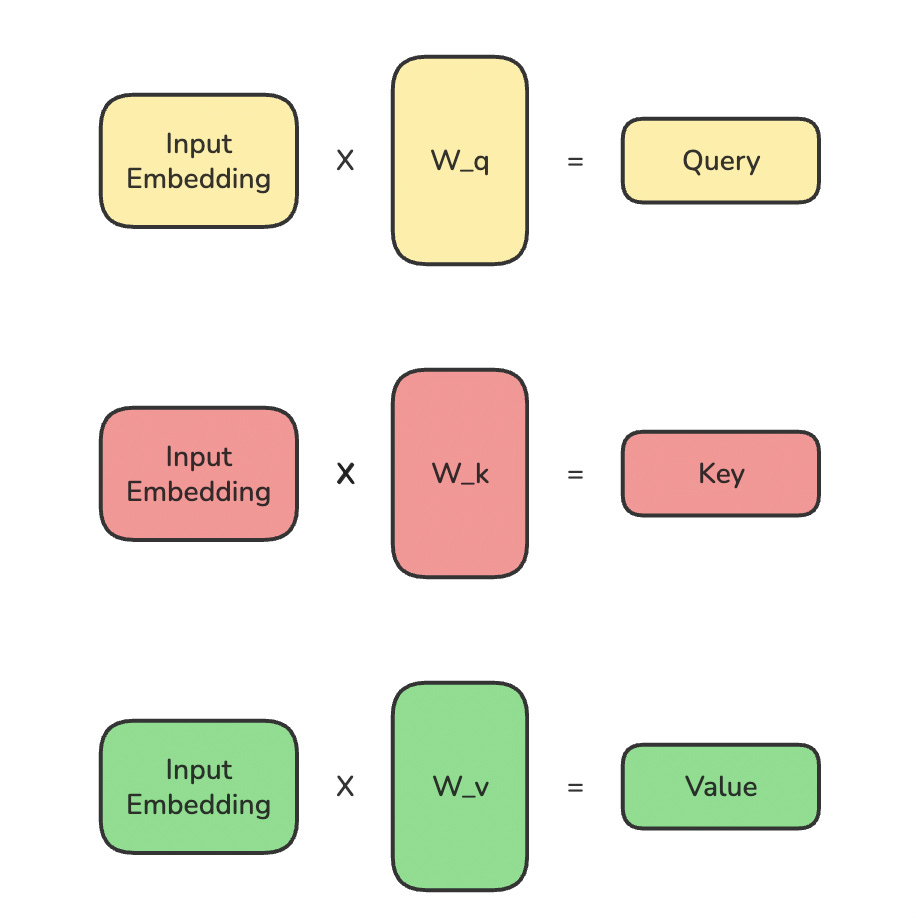 W_v = torch.rand(embedding_dim, embedding_dim, requires_grad=True)# Project input embeddings to Q, K, V