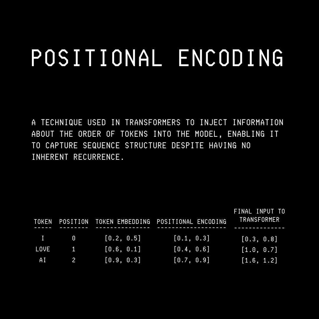 Since the Transformer architecture processes tokens in parallel, it has no way of knowing the order of tokens in a given sentence. Positional Encodings are therefore used to represent the positional information of tokens.