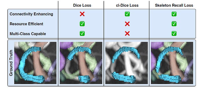 The visual below demonstrates how the Skeleton Recall loss differs from the previous state-of-the-art losses.