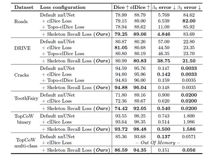 In addition, the calculations in the cl-Dice loss involve intensive GPU-based operations, which makes it unsuitable for large 3D datasets and multi-class segmentation problems.