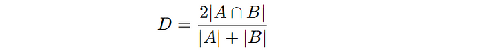 The Dice similarity coefficient measures the similarity between two sets.