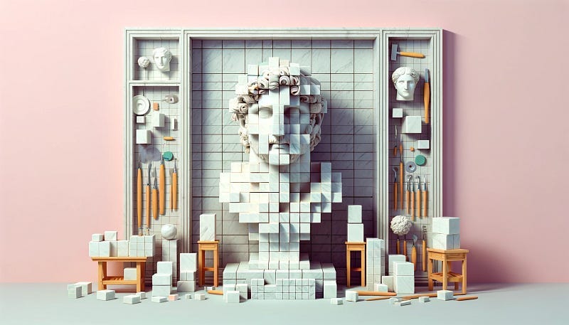 Imagine that we have an imaginary sculpture hiding inside a huge block of marble and we want to expose it.