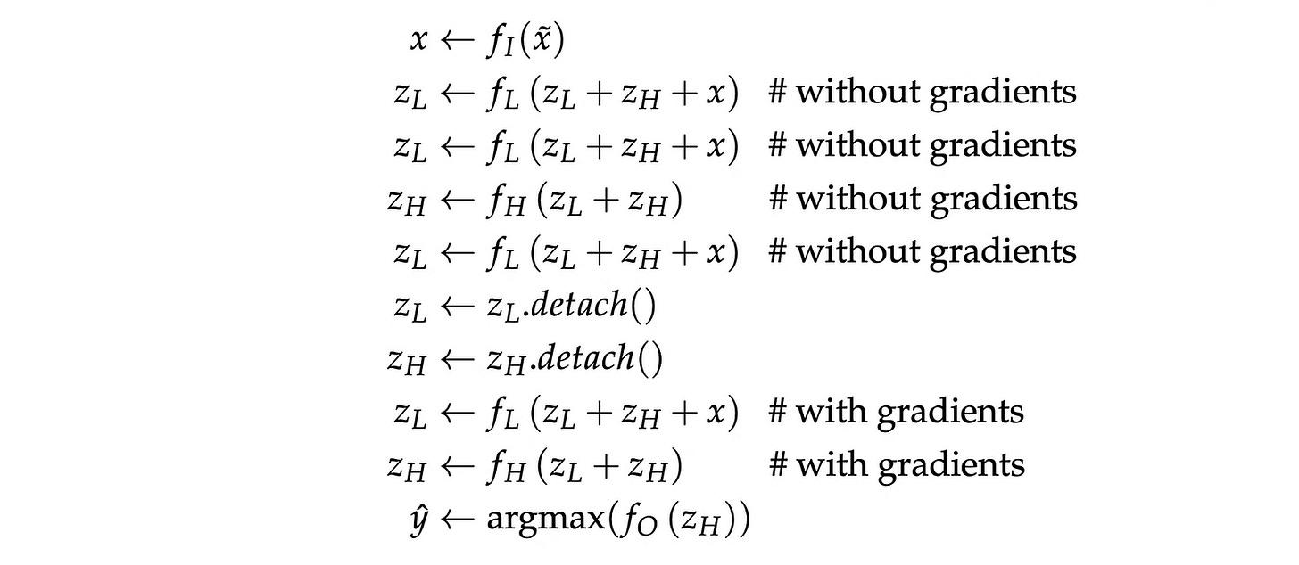 Mathematically, a forward pass of HRM looks as follows: