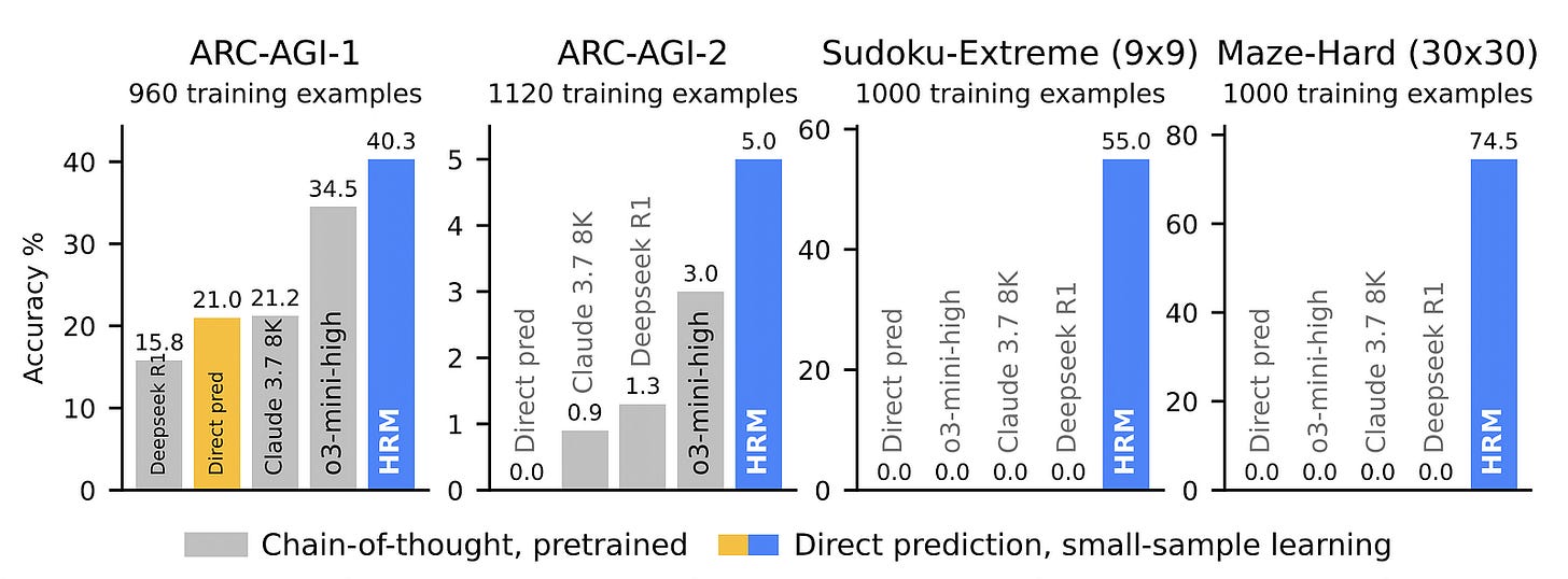 A ray of hope emerged with the introduction of the Hierarchical Reasoning Model (HRM) in early 2025, which, with only 27 million parameters and using only 1000 training samples, achieved exceptional performance on complex reasoning tasks, including ARC-AGI.