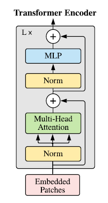 This block consists of alternating layers of Multi-Head Attention and MLP blocks (consisting of two feed-forward layers with a GELU non-linearity).