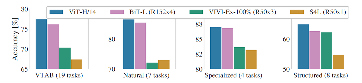 Vision Transformers (ViTs) also generalize well in their ability to classify images across natural, specialized, and structured domains as part of the Visual Task Adaptation (VTAB) benchmark.