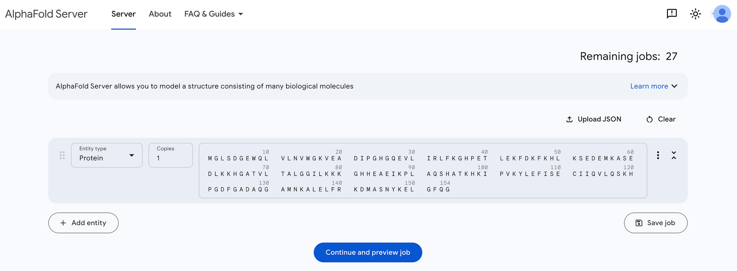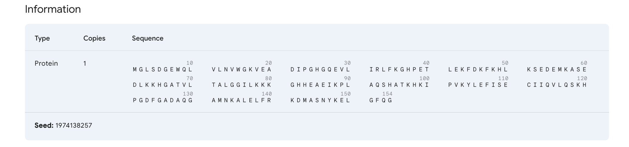 Since this is a small protein, AlphaFold will sequence it pretty quickly (in a few minutes).