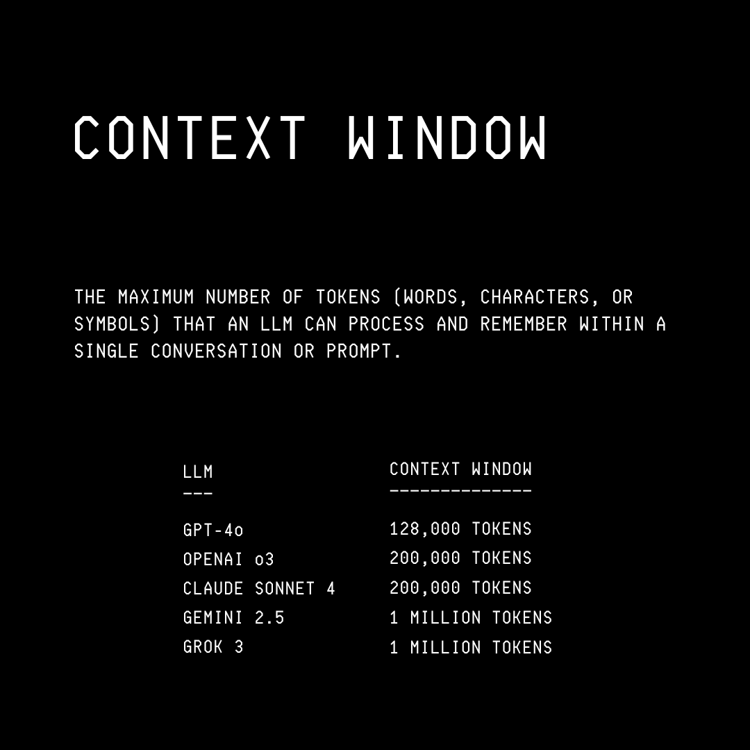 LLMs like Googleās Gemini 2.5 and xAIās Grok 3 have a context window of 1 million tokens, which means that they can process up to 1,500 pages of text or 30K lines of code simultaneously!