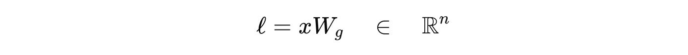 Given the token embeddings input to the MoE layer represented by ‘x’ and ‘n’ as the total number of Experts, the router computes a score/ logit for each expert using a linear projection W(g) as follows: