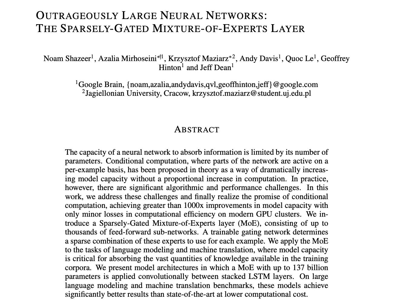 The authors of this paper applied the MoE architecture to RNNs with LSTM layers, rather than LLMs of today.