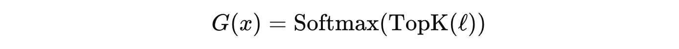 After top-k masking, applying softmax assigns zero probability to non-selected experts (whose logits are set to −∞ in the previous step) and normalizes the selected experts’ weights so that they sum to 1.