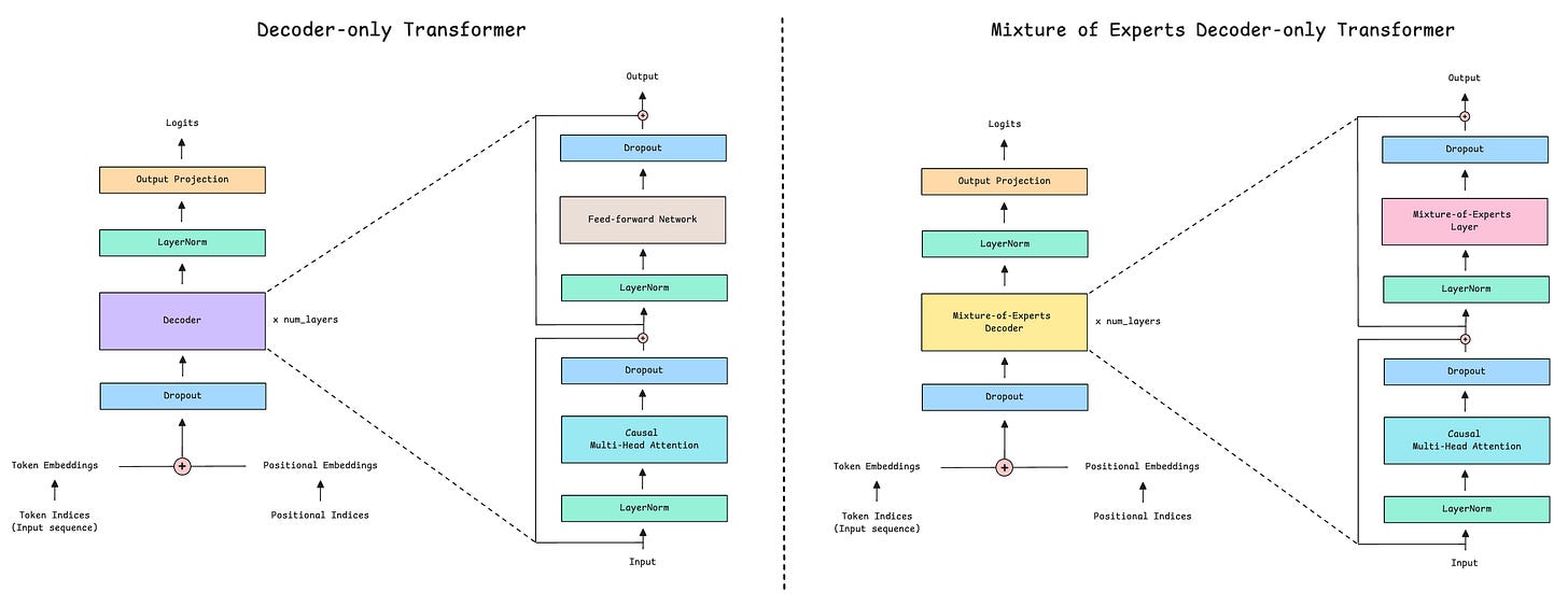 Modern-day LLMs like Grok-1, DeepSeekMoE, gpt-oss, and Mixtral (and many other proprietary LLMs whose architectural details aren’t publicly available) use the Mixture of Experts (MoE) architecture.