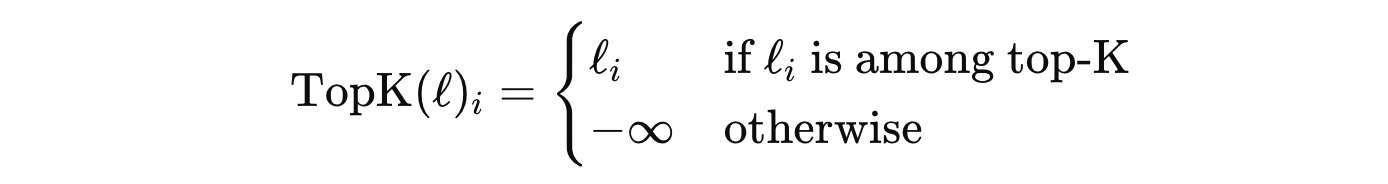Based on ‘k’, a hyperparameter that represents the number of experts activated per token, the logits for only the top-k experts are kept, and the rest are masked out using -∞.