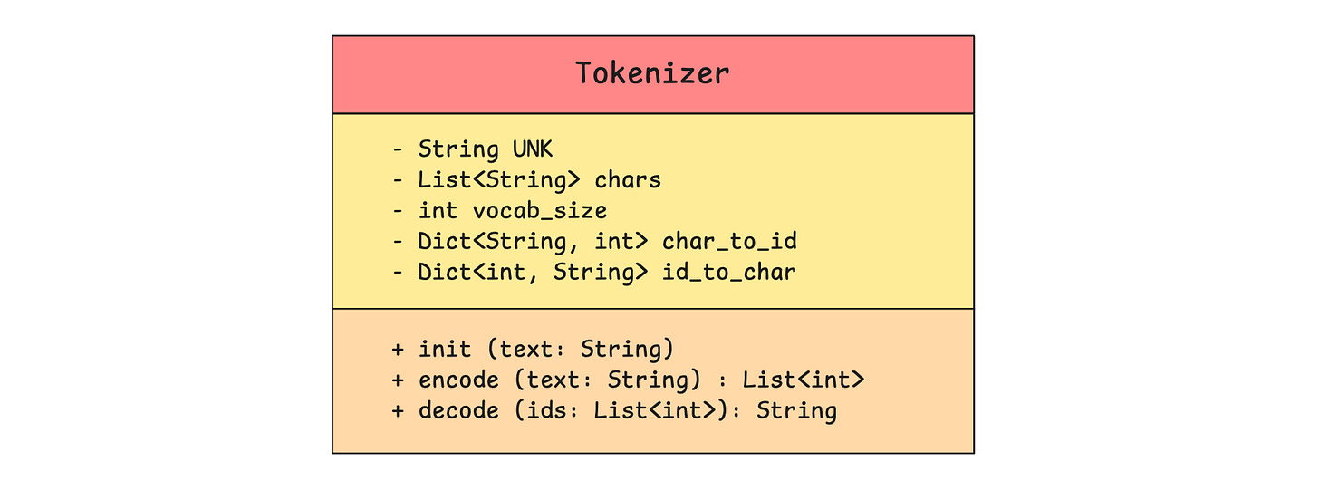 return "".join(self.id_to_char.get(id, self.UNK) for id in ids)And that completes the implementation of our simple character-level Tokenizer.