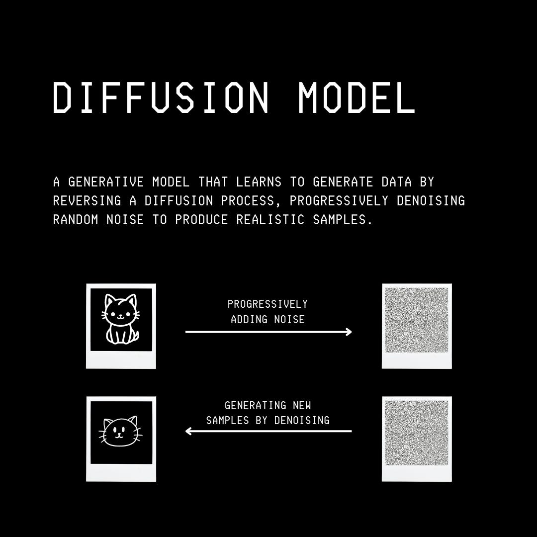 Forward Diffusion: The model starts with input data (an image) and incrementally (in multiple timesteps) adds Gaussian noise until the data becomes completely random.