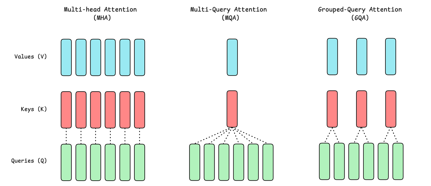 Here is how GQA compares to MHA and MQA.