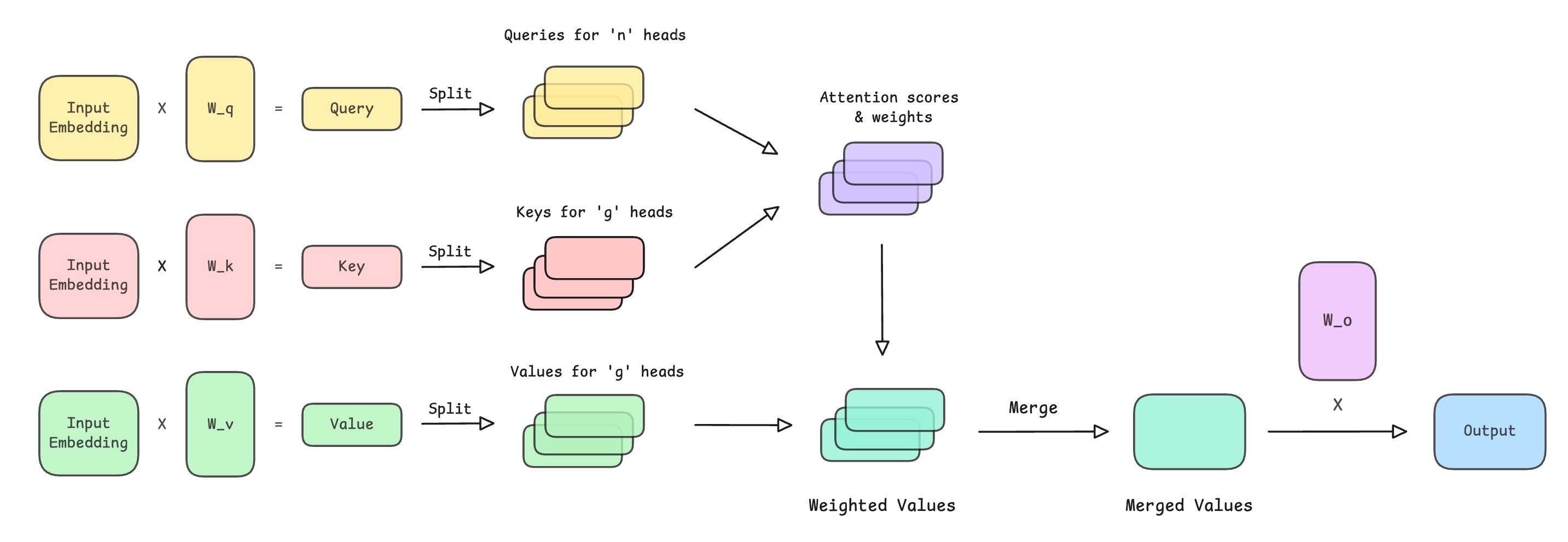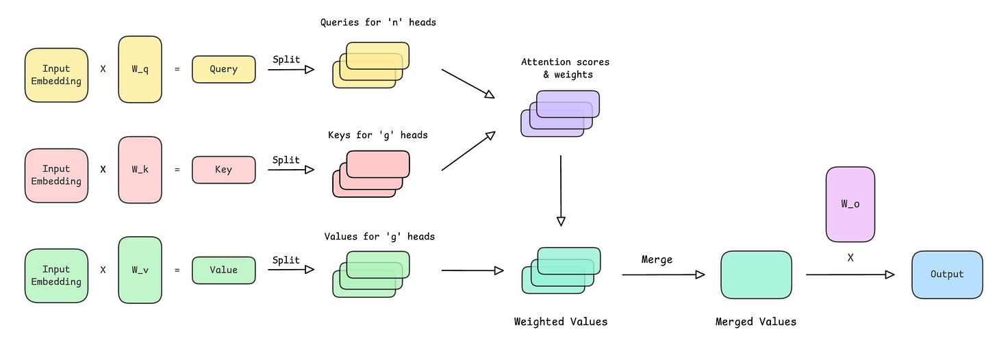 return outputMHA, MQA & GQA Visualised