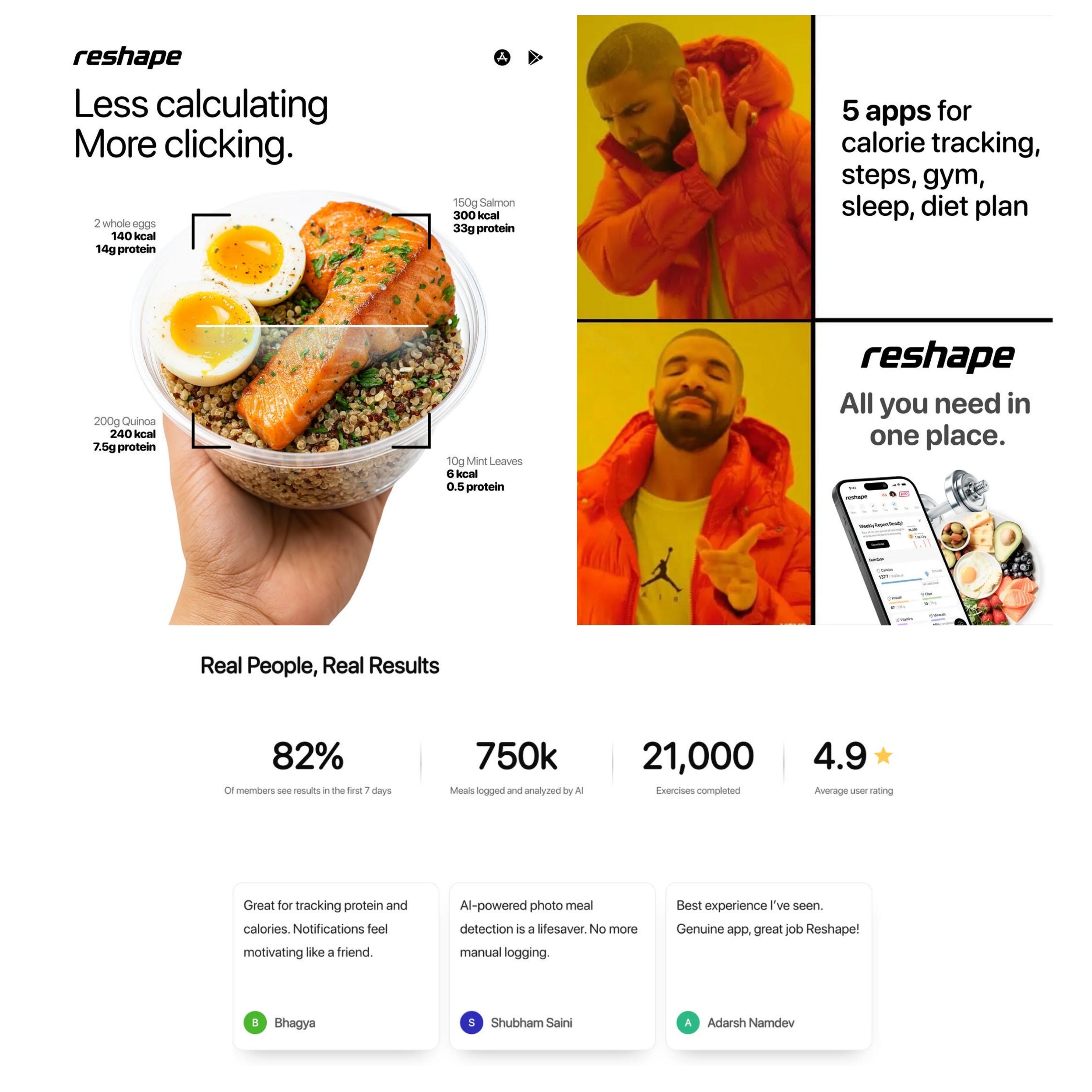 Just snap a photo or say what you ate, and instantly get precise calorie, macro, and nutrient tracking with Reshape’s AI, skipping all that tedious logging work.