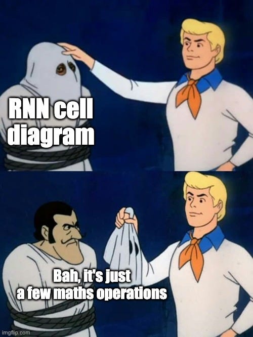 Let’s keep this mental model in our back pocket — it’s going to make the scary-looking RNN diagrams feel a lot less scary.